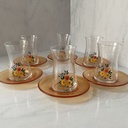 6 Verres 6 Sous Tasses Rouge.
